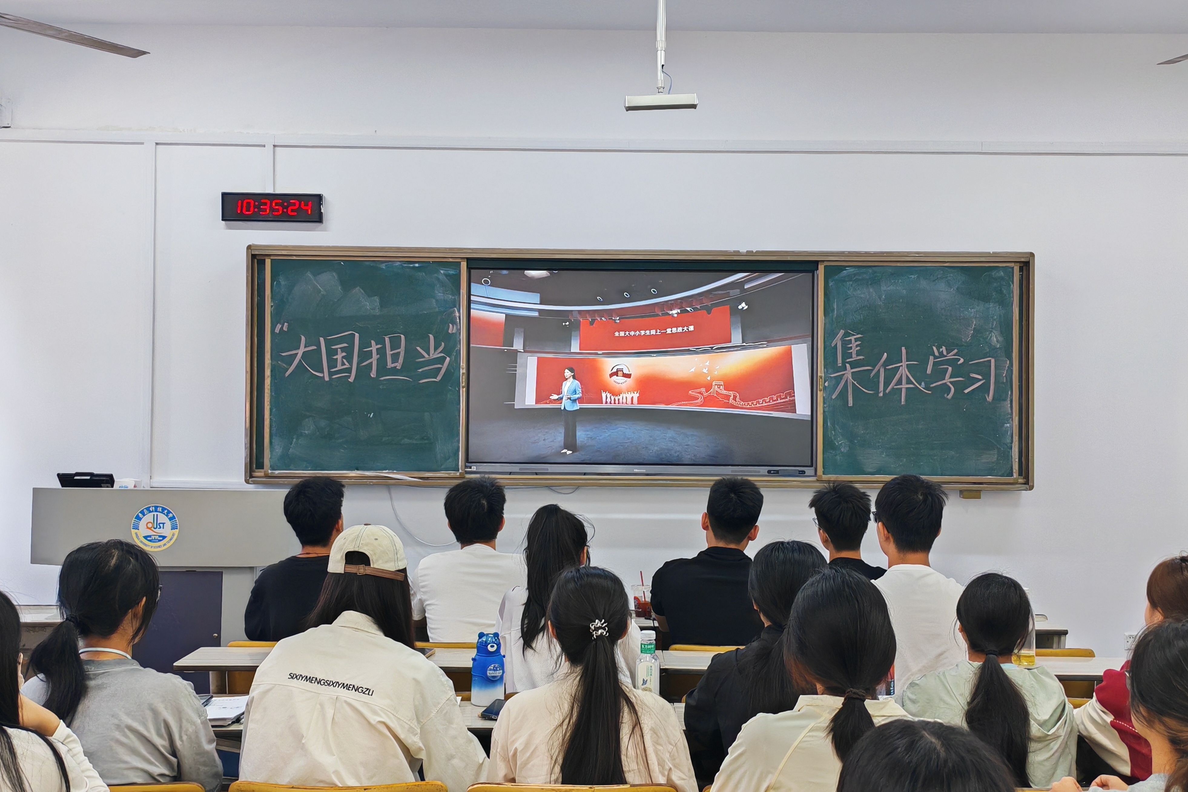 通过“红旗飘扬,青春向党”主题升旗活动,激发同学们浓浓的爱国情感与奋发力量。在“光影述担当同心向未来”主题教育活动中,学院选取了聚焦国家重大工程、国际援助等题材的影片,通过震撼的银幕画面,生动展现我国在全球治理、民生保障等领域的责任担当与大国风范,同学们更坚定了“知识强国”的专业报国信念。