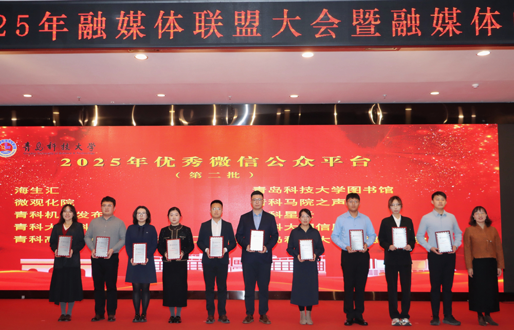 与会领导嘉宾分别为2025年十佳优秀学生通讯员、第五届融媒体中心优秀学生干部、2025年优秀宣传干事、2025年优秀微信公众平台、2025年新闻宣传先进单位颁奖,为第六届融媒体中心副主任、各校区分中心主任、融媒体中心骨干颁发聘书。