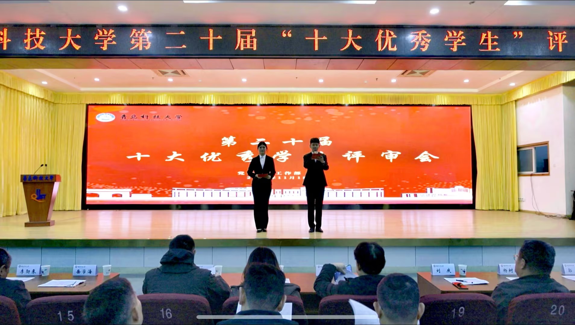 经学院(校区)选拔推荐、学校资格审核,共有21名候选人脱颖而出,进入网络展示投票与现场答辩评审环节。评审会现场,候选人结合自身学习、工作、生活的实际情况,从学业发展、校园活动、社会实践、学科竞赛等多个角度讲述了他们精彩的科大故事。他们中,有连年稳居专业第一成功推免北大、浙大等顶尖高校的“学习标兵”,有手握多篇SCI、多项发明专利的“科研达人”,有志愿服务时长累计上千小时的“公益先锋”,有退役不褪色、复学建新功的“国防尖兵”,还有在体育竞赛中屡创佳绩的“运动健将”……他们用实际行动传承“科大家风”、践行“橡胶品格”、弘扬“科大精神”,充分展现了青科大学子昂扬向上的精神风貌与实干担当的时代品格。
