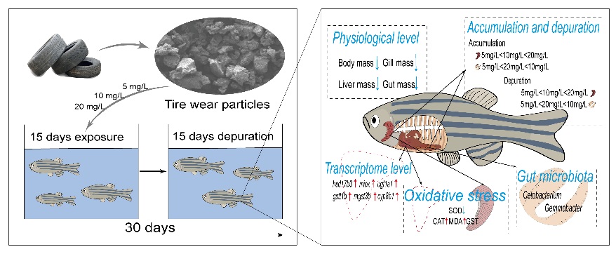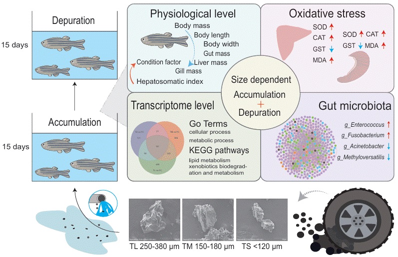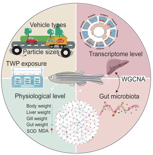 轮胎磨损颗粒(Tire Wear Particles, TWPs)是交通活动产生的重要微塑料污染物,广泛存在于土壤、水体和大气中,对水生生态系统的潜在威胁日益受到关注。然而,不同粒径、来源及浓度的TWPs在生物体内的毒理作用机制仍不清晰。为系统揭示TWPs的毒性规律及其对宿主与肠道微生物互作的影响,永利3044浏览器生物工程学院丛静副教授指导张云、赵天宇、宋倩倩、孟庆轩等研究生,开展了一系列系统研究,并取得重要进展。