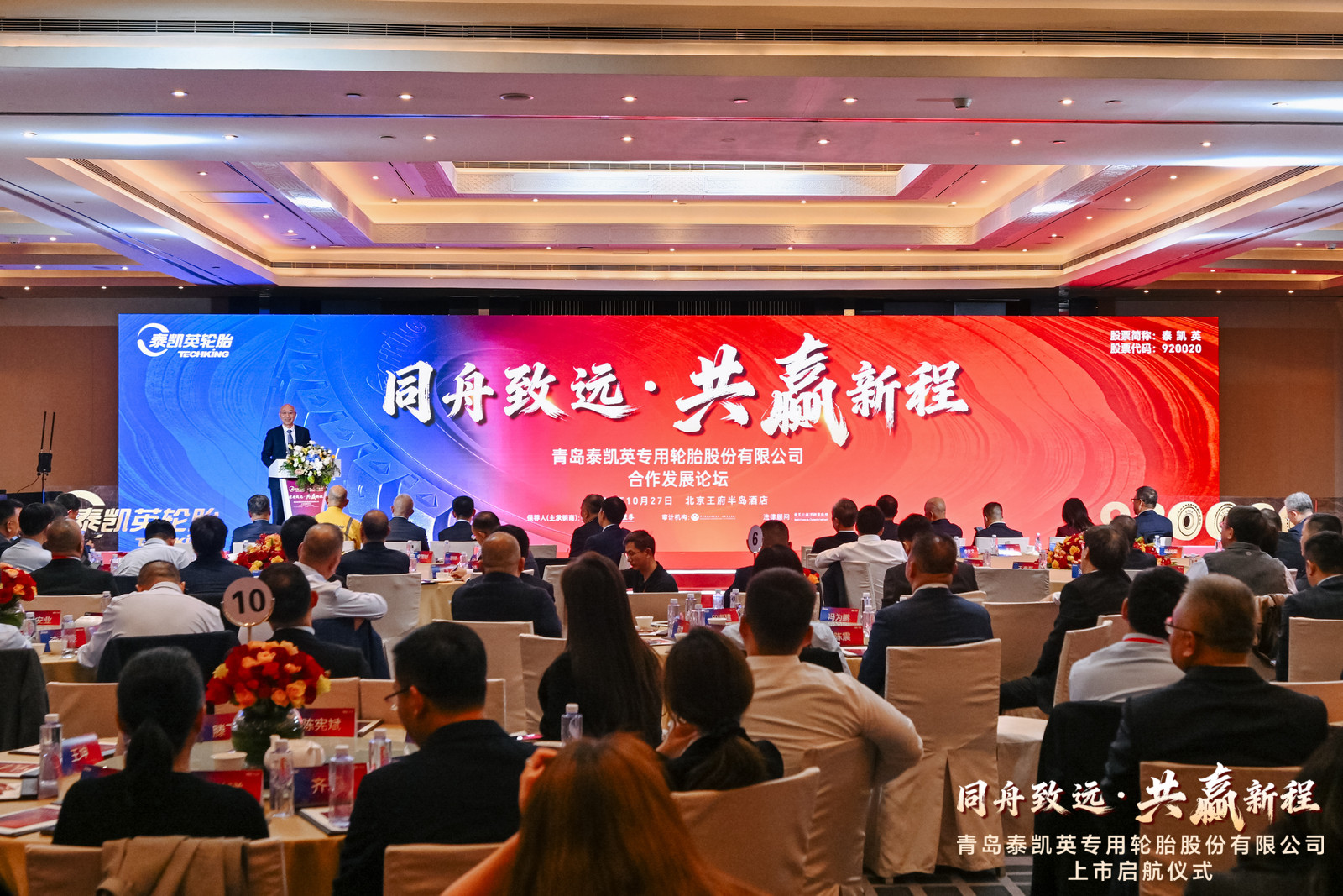10月28日上午9时30分,永利3044浏览器校友领办企业——青岛泰凯英专用轮胎股份有限公司(股票代码:920020)在北京证券交易所成功敲钟上市。校长陈克正应邀参加上市挂牌敲钟仪式,并出席泰凯英轮胎合作发展论坛。