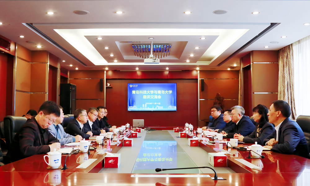 杨天梅代表学校向青岛大学长期以来的关心支持表示感谢,对青岛大学近年来高质量发展取得的成效表示祝贺,并简要介绍了学校办学历程、优势特色等方面的情况。他表示,希望双方围绕“811”项目建设、科研项目联合申报、人才协同培养、服务青岛科创大走廊等方面深化务实合作,推动两校在更深层次、更宽领域实现互利共赢。